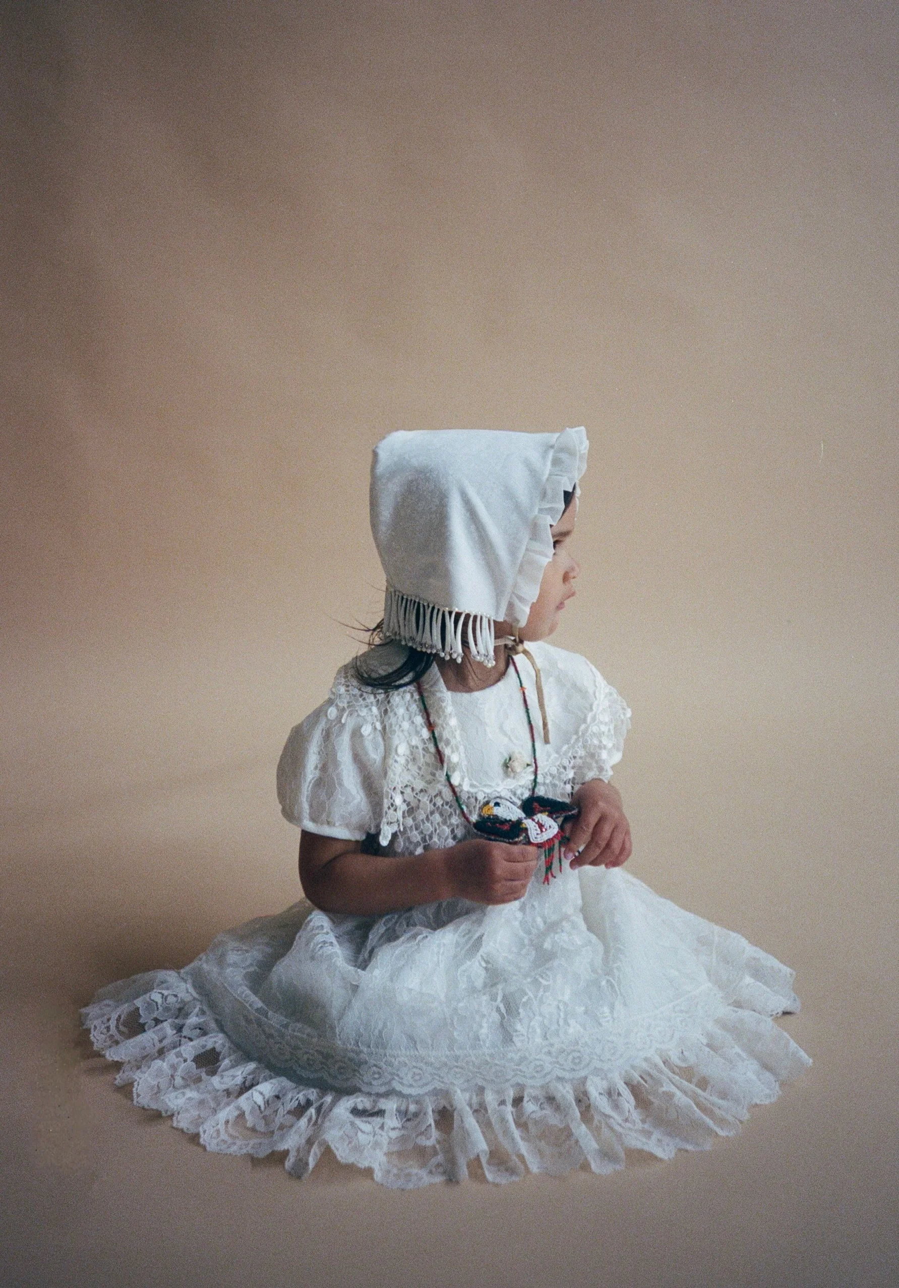 Two baby bonnets adorned with dentallium shells, created in honor of my nieces. This work is a tribute to our next generation—an offering of love, tradition, and intention. Through this work, I aim to pour into the little ones around me, nurturing their strength while breaking cycles and carrying forward the beauty of who we are.Vision, lens, and final cut by Jaadaa Kuyaas.